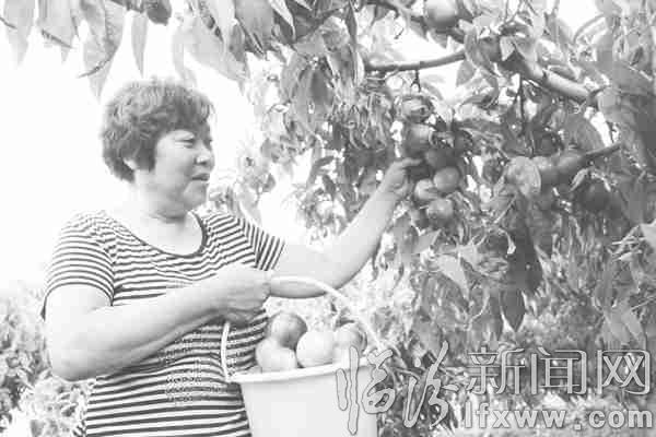临汾新闻网讯 近日,在曲沃县杨谈乡杨谈村,果农都亲正在自家的桃园里采摘油桃。今年,她家种植了4亩油桃,亩产量达6000余斤,预计收入3万元。