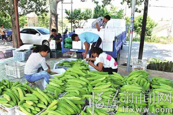 临汾新闻网讯 近日,在曲沃县曲村镇下坞村,菜农正将采摘的苦瓜打包装箱准备销售。下坞村共有温室大棚200余座,占地面积1000多亩。