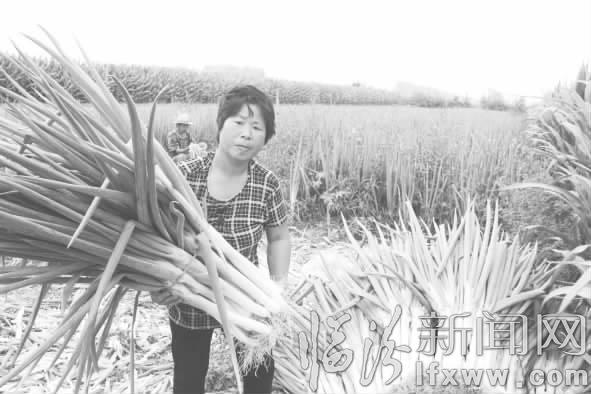 临汾新闻网讯 曲沃县北董乡依靠土地肥沃、水资源充足等有利条件种植蔬菜,这里产的大葱、大蒜、洋葱等销往周边县(市、区)各大市场,增加了农民的收入。图为该乡营里村种植户许祥埔一家在地里收大葱。(张荣)