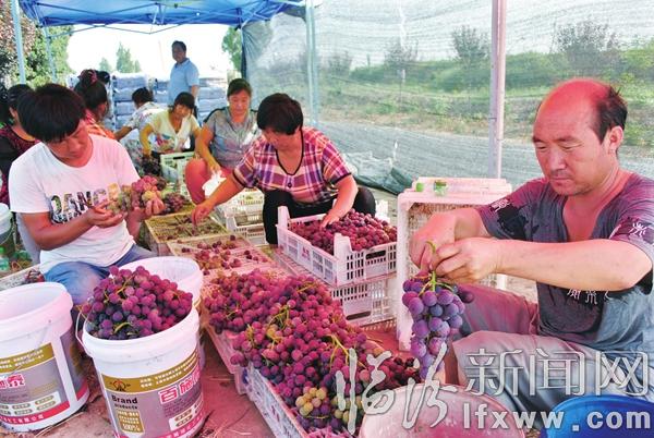 临汾新闻网讯 8月23日,曲沃县史村镇南常村葡萄种植户迎来了葡萄丰收的季节,各地客商纷纷来到这里收购葡萄,远销河南、安徽、山东等地。据悉,该村葡萄栽培面积2000余亩,当地政府积极推动葡萄特色种植,并带动相应的乡村采摘旅游,让葡萄种植成为提高当地百姓收入的主要推动产业。 (张荣)