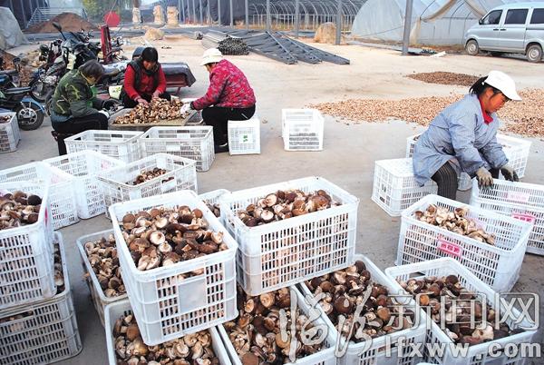 临汾新闻网讯 近日,在曲沃县绿康源香菇有限公司,工人们在忙着分拣香菇。绿康源香菇有限公司通过“公司+基地+合作社+农户”的运作模式推广香菇种植、销售及深加工项目,在曲沃建设6个香菇基地,年产香菇5000吨,带动200余农村劳动力在家门口就业,促进了当地农民增收致富。 张荣 摄