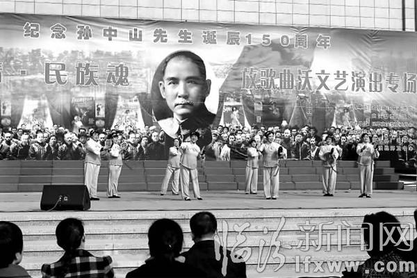 临汾新闻网讯 近日,曲沃县政协、县委统战部、文化局、广电中心联合举办纪念孙中山诞辰150周年文艺演出。参加演出的演员们以高昂的激情,精彩的表演,表达了继承、发扬孙中山先生爱国思想的挚热真情。红兵立 义海燕 摄