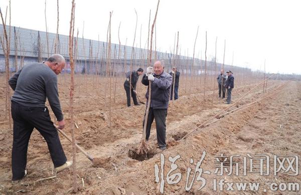 临汾新闻网讯 近日,在曲沃县史村镇史村,村民正在定植苗木。该村有育苗基地200余亩,部分村民通过承包村里的土地,连片育苗栽植北栾、红叶李、法桐、国槐、柳树等,有效增加了收入。
