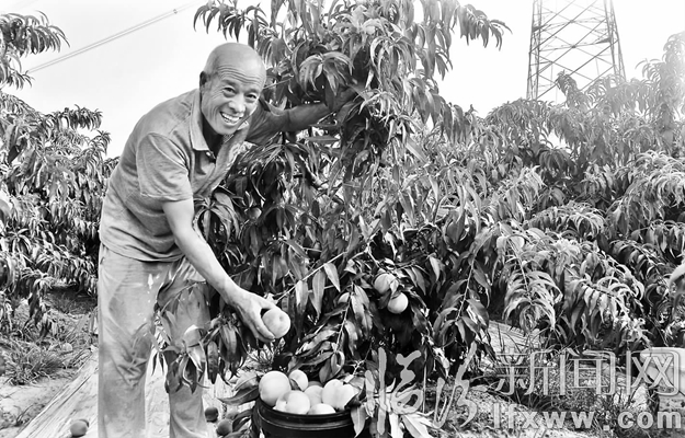 临汾新闻网讯 近年来,曲沃县史村镇听城村积极探索产业发展新路子,引导村民种植“红不软”品种桃树1500余亩,预计今年全村仅鲜桃收入可达1000万元,有效提高了农民收入。图为近日,该村村民刘金贵正在给客户采摘鲜桃准备外运。
