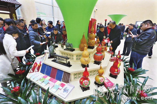 临汾新闻网讯 12月13日,在曲沃县晋园的展厅内,葫芦、沥粉漆器等富有地域特色的手工艺品深受游人喜爱。据悉,曲沃县历史悠久,民间蕴藏的手工艺品多达数百种,为保护和开发这些非物质文化遗产,近年来,该县大力挖掘和发展民间传统工艺品、打造民间工艺之乡的举措,取得了明显效果。
