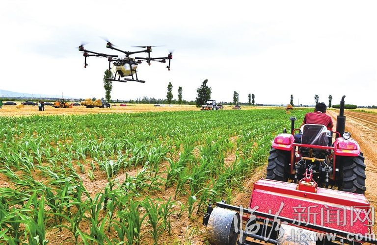 临汾新闻网讯 连日来,在曲沃县史村镇吉许村的玉米地里,植保服务飞防技术员正在对玉米进行无人机叶面肥喷洒。相比传统人工操作,采用自动化的植保无人机每小时作业量可达70至80亩地,作业效率是人工喷洒的40倍以上。