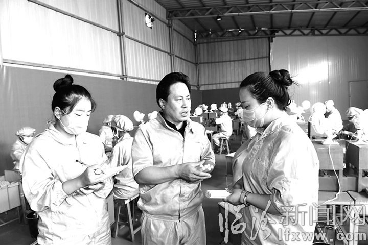 临汾新闻网讯 近日,由曲沃县农林委引进的百笑艾绒农业科技有限公司年产3000吨艾绒制品及一万亩艾草种植基地建设项目在曲沃县磨盘岭农业科技园区投产。该项目总投资8000万元,可安排就业岗位320个,直接带动当地种植农户2000余户增收。图为该公司负责人在生产车间抽检产品。