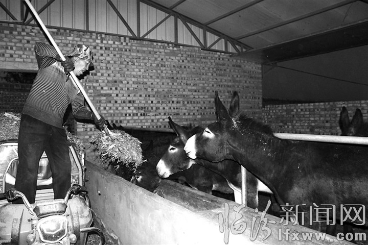 临汾新闻网讯 近年来,曲沃晋合泰农副产品有限公司不断建立健全繁育系谱和养殖档案,完善产品可追溯体系,坚持传统生态养殖、自然生长的方式科学养殖晋南驴,通过“公司+农户”的模式不断扩大养殖规模,带动了周边村民增收。图为近日,该公司养殖场工人正在给驴投喂贮青饲料。