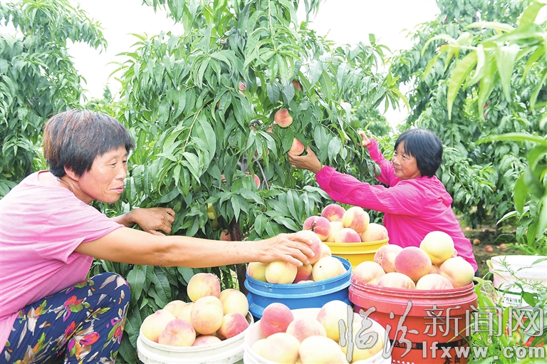 临汾新闻网讯 近日,曲沃县史村镇听城村村民正忙着采摘成熟的桃子。