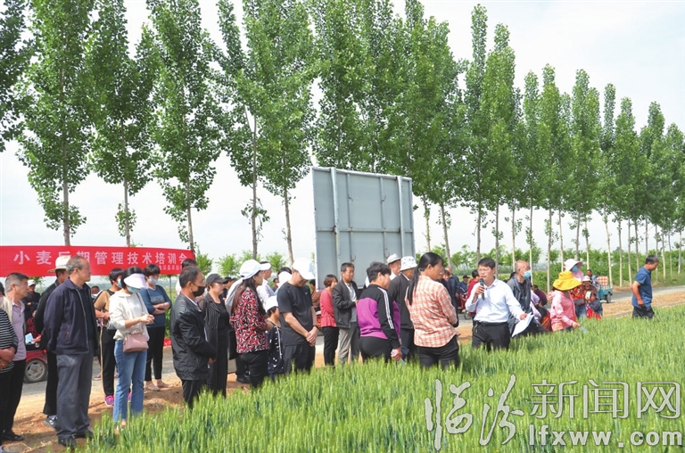 临汾新闻网讯(记者 祁欣) 近日,在曲沃县史村镇郇村的千亩示范田里,一场人才云集的“北方小麦化肥农药减施技术集成研究与示范”现场观摩会火热进行。来自省、市、县的农业专家和史村镇的种粮大户近100人驻足田间,或弯腰细观、或相互交流,他们瞅着小麦正抽穗扬花,大赞使用了化肥农药减施技术的小麦长势喜人。