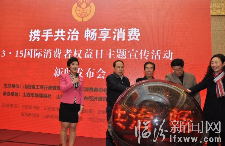 人民网太原3月12日电(王建)12日上午,山西省工商局、山西省消费者协会在太原启动“携手共治 畅想消费”3·15国际消费者权益日主题宣传活动。省工商局党组书记、局长周明定,中消协常务理事、省消费者协会会长李鹏等共同按下启动球。启动仪式上,山西省工商局和山西省消费者协会分别公布了2014年山西省流通领域商品质量违法及消费维权十大典型案件和消费投诉八大热点。