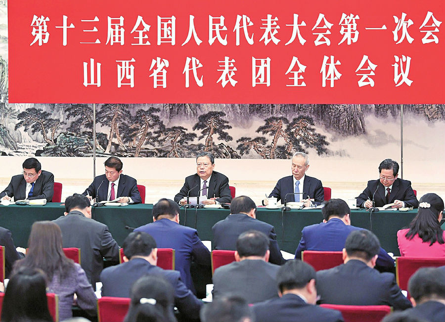 中共中央政治局委员、中央财经领导小组办公室主任刘鹤参加审议。山西代表团团长骆惠宁,第一副团长楼阳生,副团长任建华,代表李秋喜、郭凤莲、刘予强、王立伟、武涛、郑连生、张宏祥等先后发言。