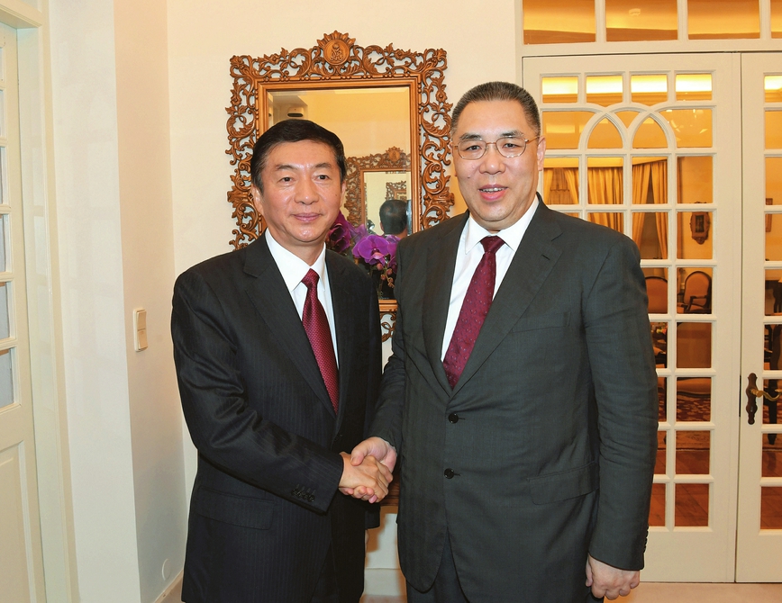 山西省委书记、省人大常委会主任骆惠宁会见澳门特别行政区行政长官崔世安。记者李联军摄