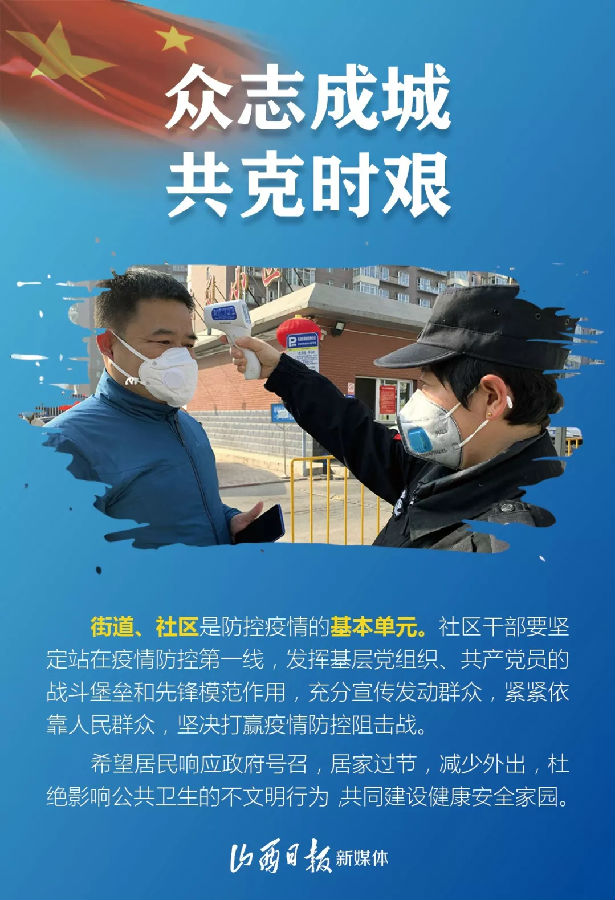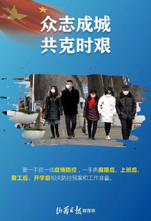他强调,要深入贯彻习近平总书记重要指示精神,贯彻落实党中央决策部署,按照省委“五严五防”部署要求,全面落实各项防控措施,齐心协力、众志成城,全力保山西一方平安,为全国打赢疫情防控阻击战作出贡献。
