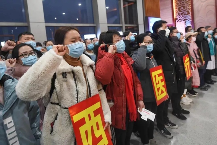 ▲驰援湖北前的出征仪式