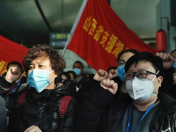 据悉,山西省第四批支援湖北医疗队来自山西11个市,由部分委直医院、市级、区县级基层医院抽调组成,携带医用物资和药品紧急集结赶到太原。9日下午3点,第四批支援湖北医疗队分别搭乘两架飞机分批支援武汉。