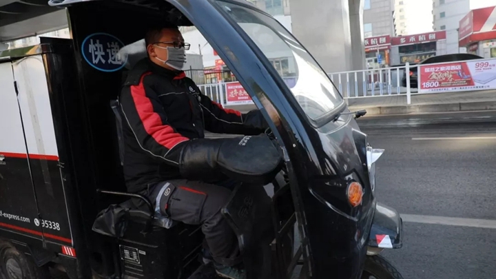 “刚刚打电话,说是在超市买东西呢,结完账就来取啦。-7°的寒冷中,杨永栋等的很是耐心,甚至还有些满足,“送快递最害怕下雨,怕淋湿了快递,也害怕下雪,路上打滑不太好走。”没有雨雪,还有阳光,这样的等待,杨永栋很是知足。