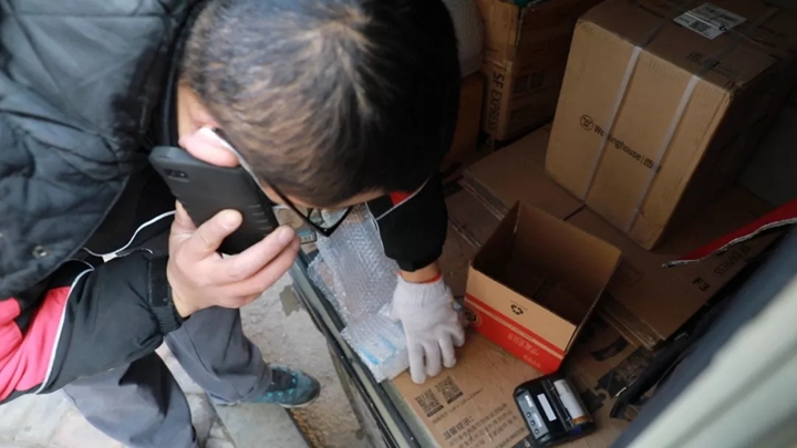 当日配送的第二站,是一个住宅小区。“您好,顺丰快递,请下楼取一下您的快递。”在小区外,杨永栋共打了11个这样的电话。