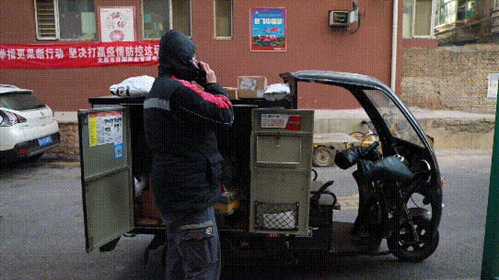 虽然立春已过,冬日的寒冷却迟迟未散,当日配送上午,太原的气温只有-7°。就在这样的寒冷中,虽然只有11件快递,杨永栋却在这一站停留了37分钟。“大家最近都宅在家里,肯定起得也比较晚,就多等等吧。” 疫情防控期间,不少居民小区都实施了封闭式管理,进不去小区,也就无法把快递放入快递柜,只能等着顾客亲自下楼取。