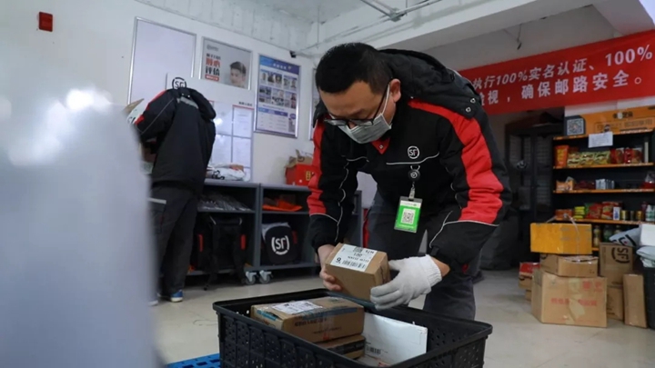适逢春节假期,又受疫情影响,顺丰快递昆仑速运营业点的日均快递量,在1000件左右,比平时翻了一番。这也意味着,无论分拣还是配送,杨永栋的工作量,都是平时的两倍。