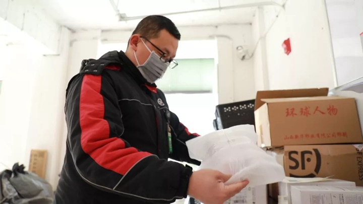 “谨慎一点总是好的,现在就是要尽量减少接触,避免交叉感染。”虽然接触少了,杨永栋却并不感觉冷漠。就在前几天,杨永栋给一位老客户送快递,客户特意塞给他两个N95防护口罩。“说是知道我最近不休息,特意给我拿的口罩。”杨永栋说,疫情期间自己每天都会领到公司配发的4个新口罩,但客户送的这两个口罩,还是让自己心里暖暖的。