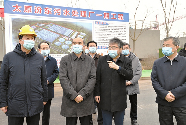 2月24日,省长林武在太原市汾东污水处理厂一期工程建设现场,调研项目复工工程进度及防疫防控工作情况。 记者李兆民摄