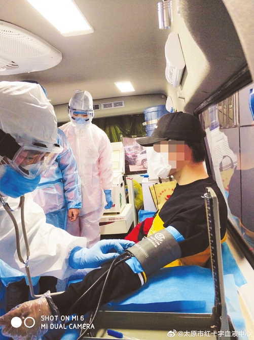 山西第19例新冠肺炎康复者正在捐献血浆。 田蔚然摄