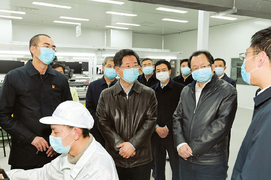 三月五日,省委书记楼阳生来到某智能制造基地生产车间,了解科技研发、产品应用、员工培训等情况。本报记者李联军摄