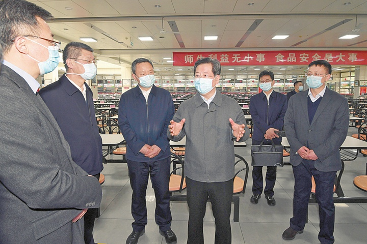 三月十八日,省委书记楼阳生在山西大学学生餐厅,考察开学准备和防控措施落实情况。记者李联军摄