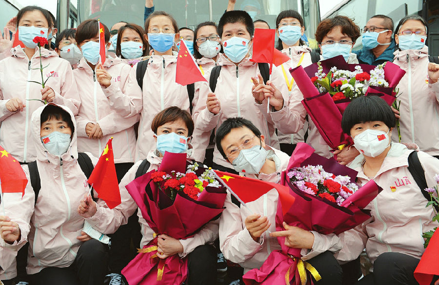 航班平安降落在太原武宿国际机场,队员们手捧鲜花,难掩激动之情。在从机场返回的沿途,群众纷纷驻足,向车队致意,高喊“欢迎回家”!队员们纷纷表示,休整后要继续以更大的热情投入到本职工作中,为全省疫情防控决战完胜贡献自己的力量。