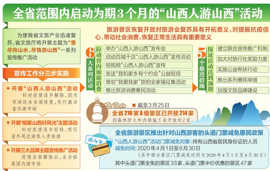 为做好疫后山西旅游市场提振,尽早激活我省旅游市场,释放消费潜力,打好疫情防控和旅游市场开拓“双战役”,3月25日,山西省文化和旅游厅召开“山西人游山西”活动发布会,宣布在全省范围内正式启动为期3个月的“山西人游山西”活动。