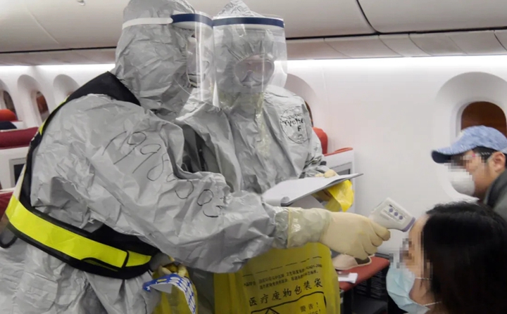 航班落地,登机检疫