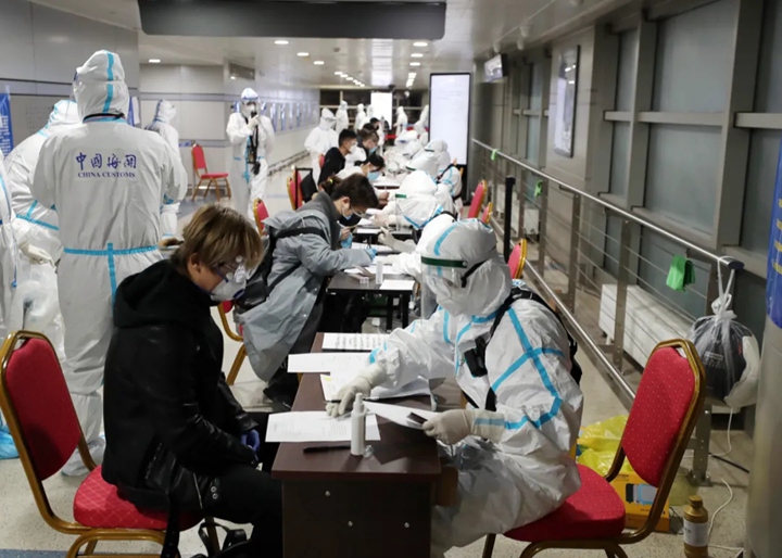 旅客下机后,要在专用通道内进行一系列的医学检测和排查,其中很重要的一项是流行病学调查。旅客身体状况、旅居史、最近有无症状及原因等,都要进行详细调查询问,这些信息将作为对入境旅客后续处置的依据。