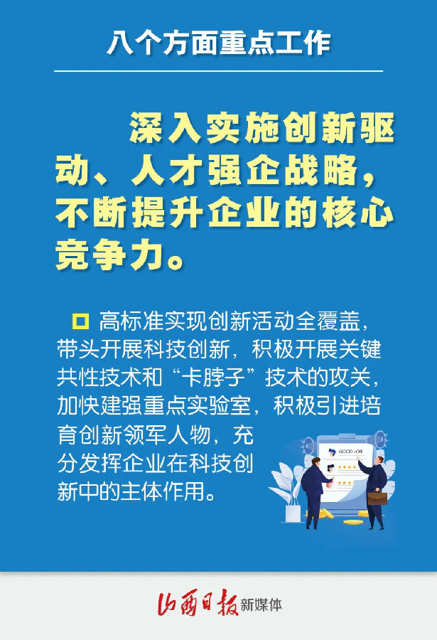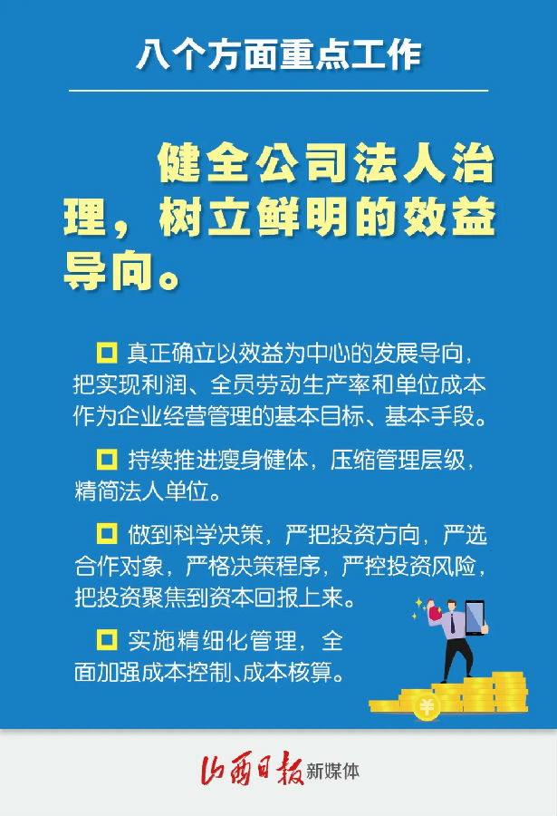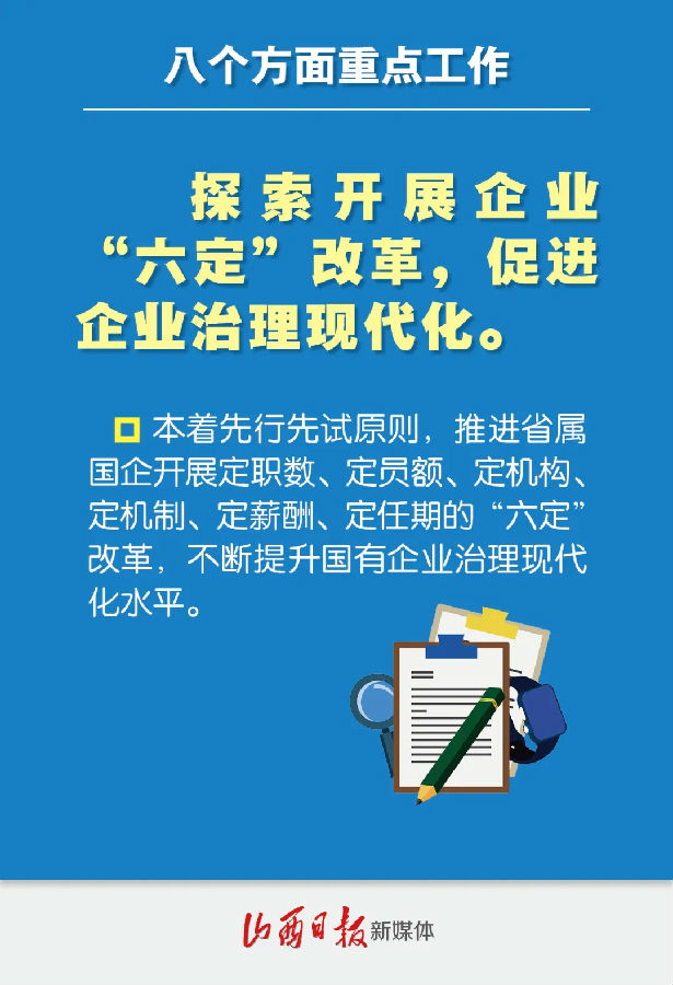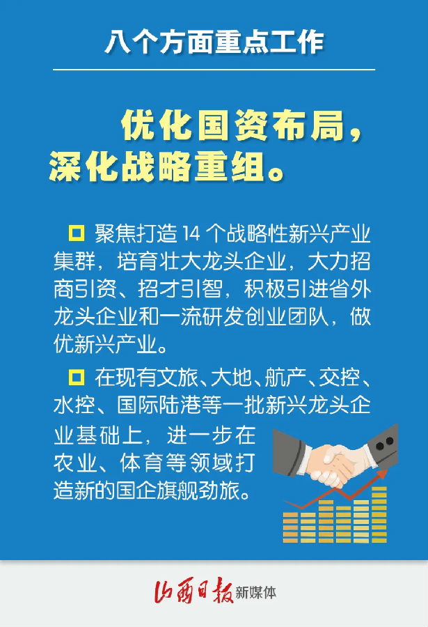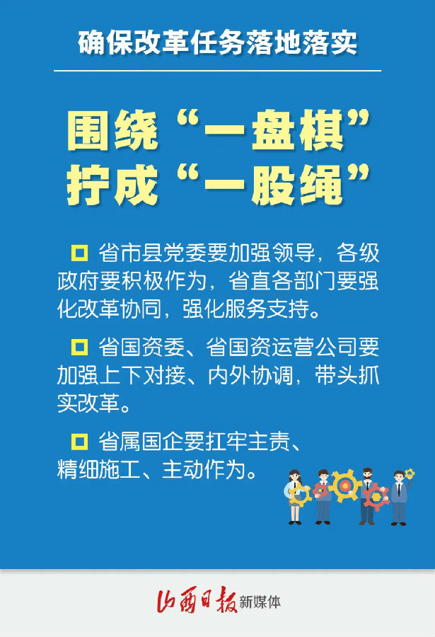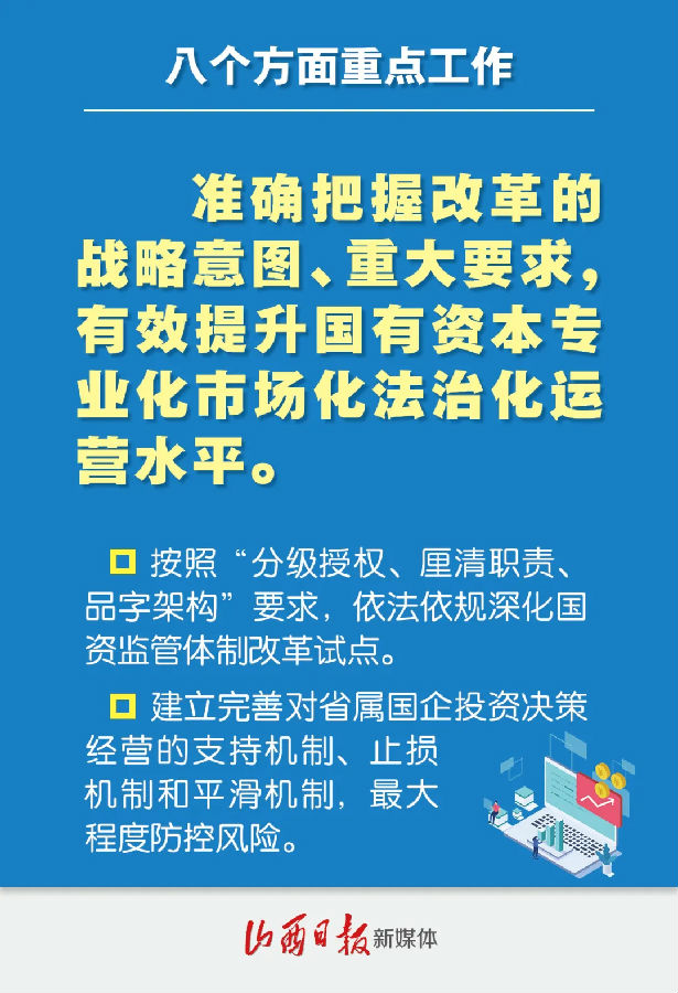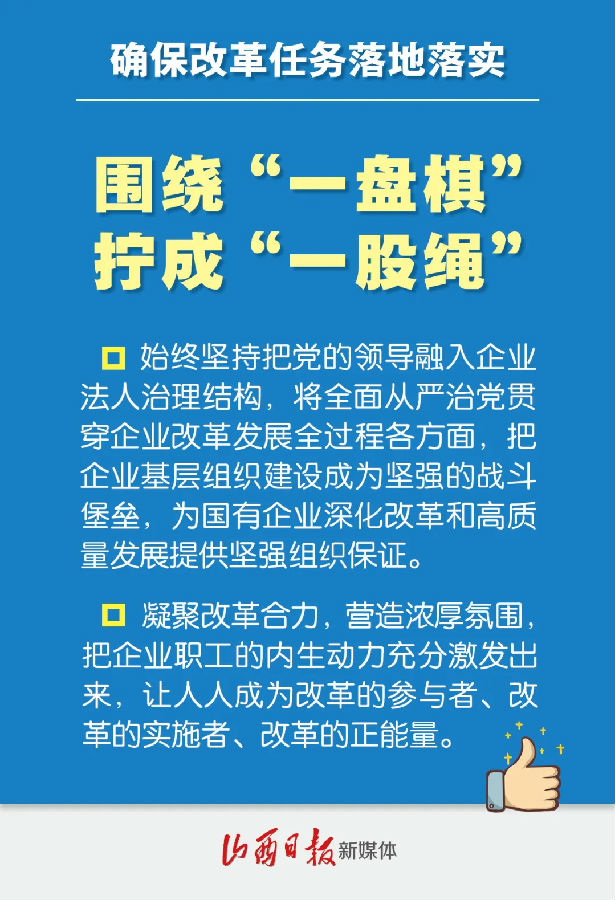 省委书记、省人大常委会主任楼阳生强调,国资国企改革是事关山西转型综改全局、事关山西国企长远健康发展的重大战略问题。要深入学习贯彻习近平总书记“三篇光辉文献”和关于国资国企改革的重要论述精神,按照省委“四为四高两同步”总体思路和要求,以深化国资监管体制改革为牵引,推动我省国资国企改革实现重大突破、根本突破,为做优做强国有企业、促进高质量转型发展注入新动能、提供新支撑。