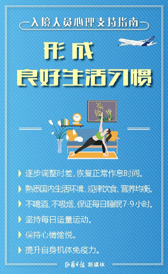 在防控新冠肺炎境外输入工作中,做好入境人员心理疏导和社会工作服务十分重要。如何帮助入境人员适应医学观察环境,规范自我防护行为、保持自我积极心态?六张海报讲解清楚。