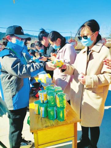 居民们正在通过垃圾分类小程序积分兑换日用品。记者摄