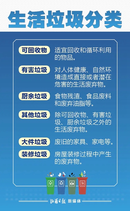 6月1日起,《山西省城市生活垃圾分类管理规定》施行。《管理规定》共7章34条,适用范围在国家要求11个设区市的基础上,结合我省实际,扩大到11个县级市城市建成区。
