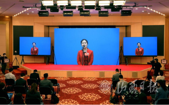 山西代表团王润梅代表在首场“代表通道”通过视频接受记者采访