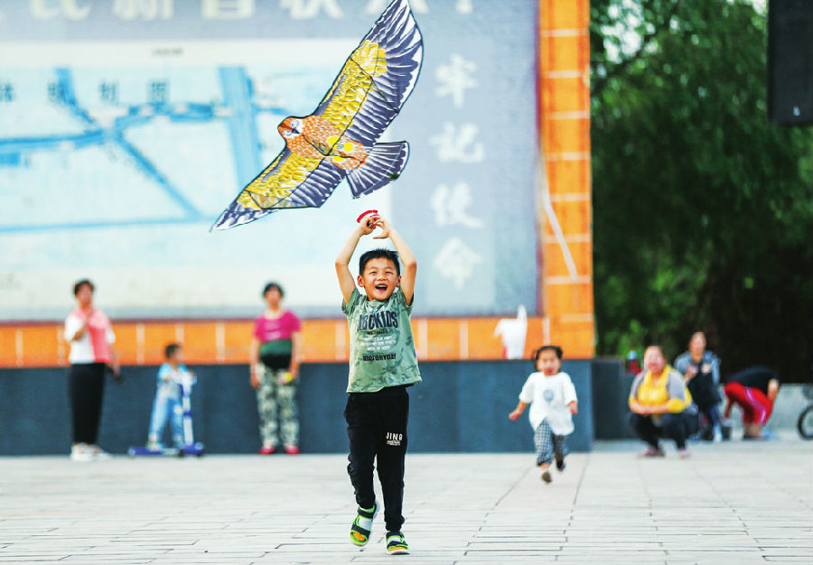 把增进人民福祉、促进人的全面发展作为一切工作的出发点和落脚点,是高质量发展的价值体现。山西省稷山县打造富有稷山特色的魅力城市,建设集生态、休闲、娱乐为一体的绿色生态公园,进一步提升市民游园的获得感幸福感。图为2020年5月16日,稷山县民乐园广场不少市民带着孩子前来游玩,感受初夏好时光。 人民图片史云平摄