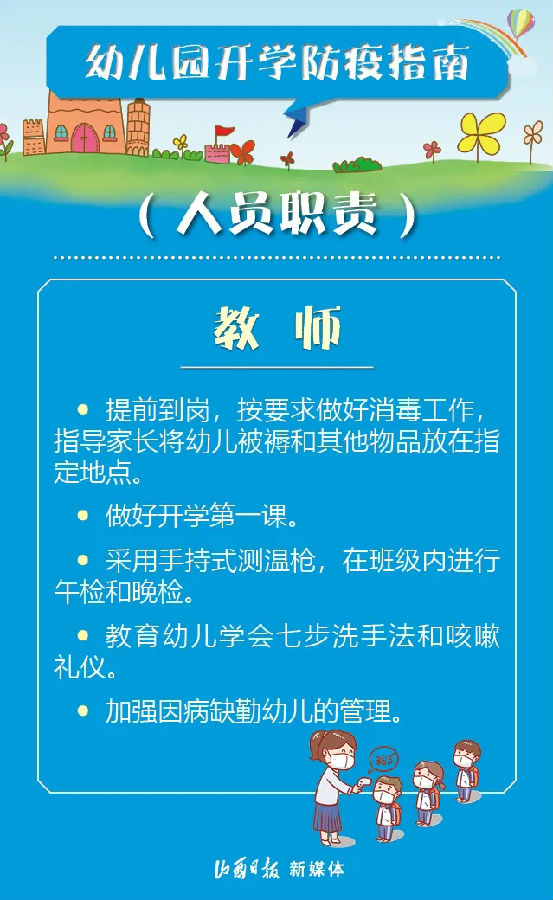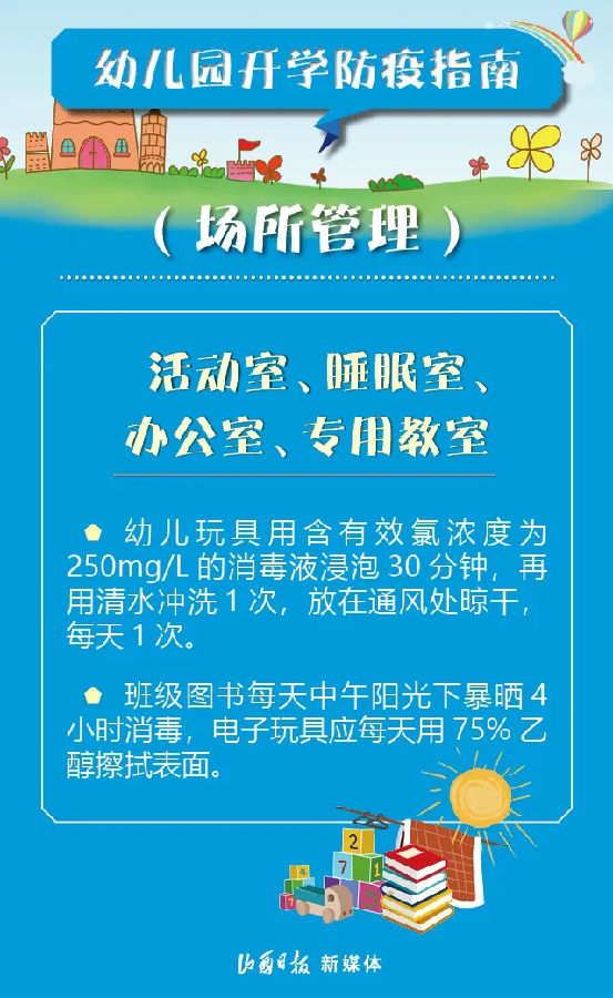 “六一”儿童节刚刚过完,我省幼儿园陆续开学。那么,在这个特殊的时期,园长职责是什么?教师应该怎么做?活动室如何消毒?卫生间怎样处置?