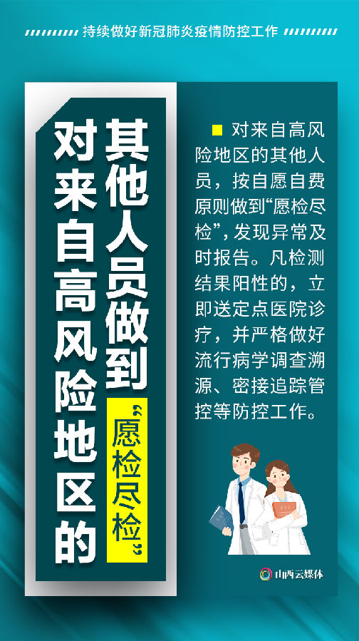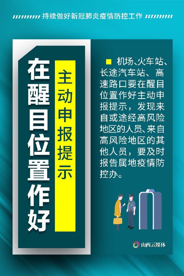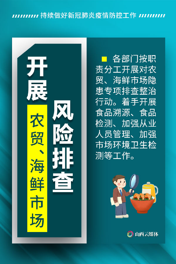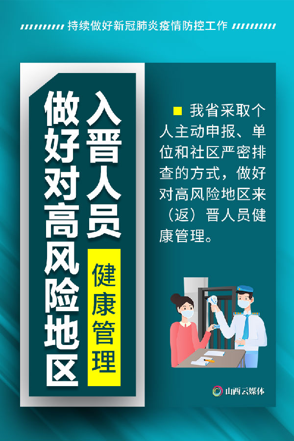 6月11日以来,部分地区已报告多例新冠肺炎本土病例。为坚决落实好“外防输入、内防反弹”防控策略,6月14日,从省新冠肺炎疫情防控工作领导小组办公室获悉:我省正在通过加强高风险地区入晋人员健康管理,开展农贸、海鲜市场风险排查等多项举措,持续做好全省疫情防控工作。