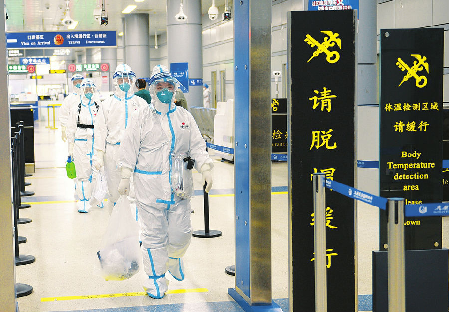6月20日上午,太原海关工作人员身着防护服准备接俄罗斯入境航班。 本报记者史晓波摄