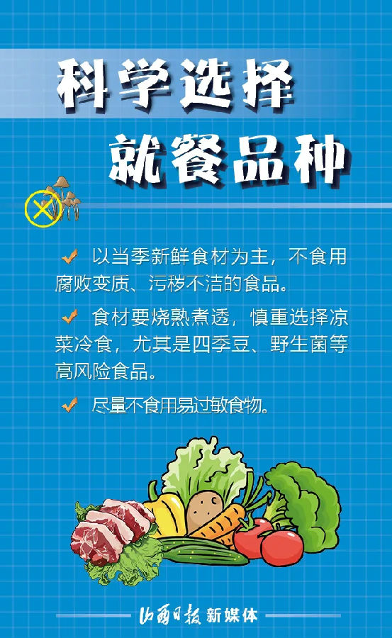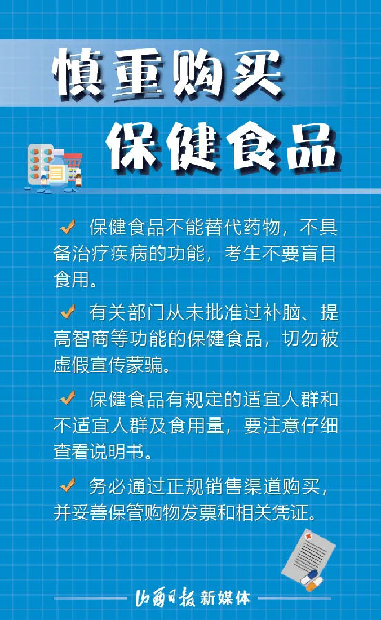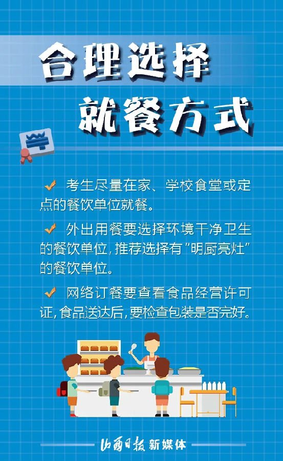 中、高考即将来临,为保障山西广大考生饮食安全,以良好的状态和健康的身体参加考试,6月18日,省市场监督管理局发布中、高考学生食品安全风险提示。山西考生如何确保“舌尖上的安全”?一组海报看风险提示。