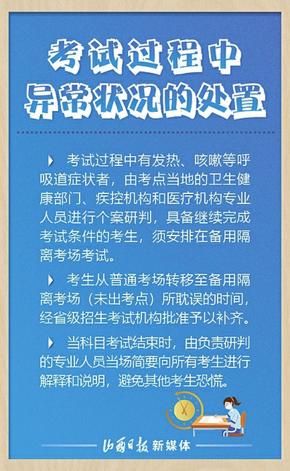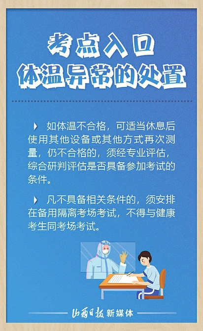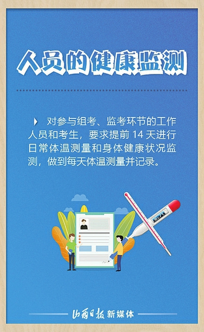 高考将至,考试期间如何做好防疫工作?6月24日,国家卫健委发布了10条高考防疫关键措施。其中提到,对参与组考、监考环节的工作人员和考生,要求提前14天进行日常体温测量和身体健康状况监测,做到每天体温测量并记录。(申芯瑞 崔雅丽)