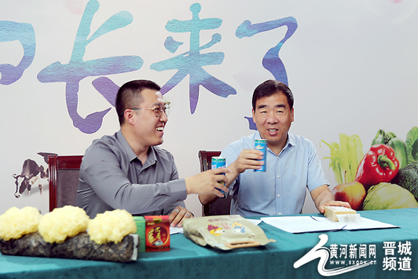 图为晋城市市长王震助阵晋城特色农产品直播带货节,药茶是最具人气的明星产品。