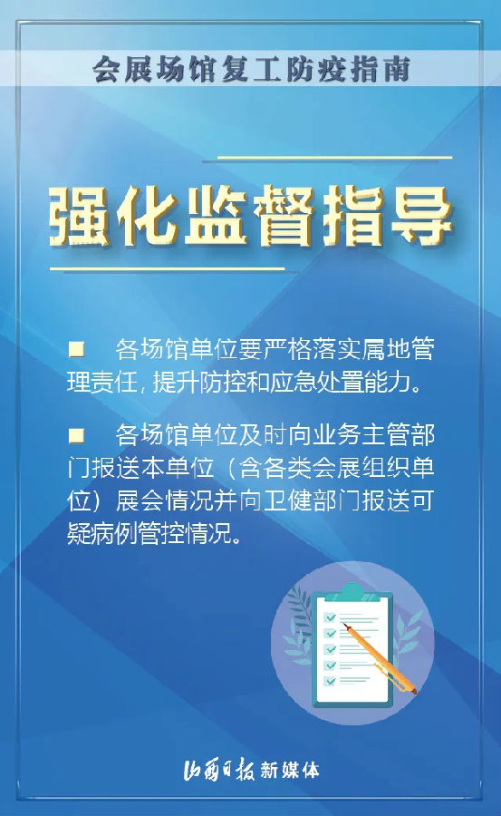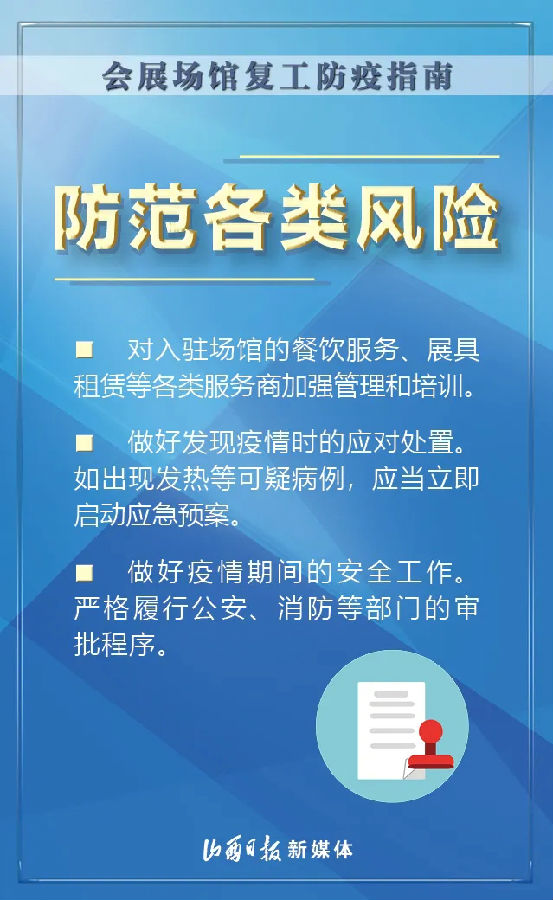 《指南》要求,强化联防联控、群防群控,不断提高常态化疫情防控和综合治理水平,建立健全常态化疫情防控长效机制,有效推进会展场馆恢复开放,有力保障经济社会秩序全面恢复。