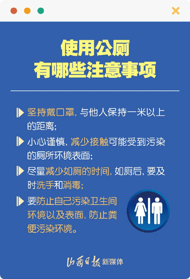 6月22日北京公布的病例中,经调查有个别病例曾经去过此前有过确诊病例的小区上过公共卫生间。去公共卫生间会被传染吗?使用公共卫生间有哪些注意事项?4张海报,请你仔细阅读。