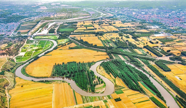 汾河稷山段弯曲的河道似舞者的飘带飞舞在河东大地。 薛俊摄