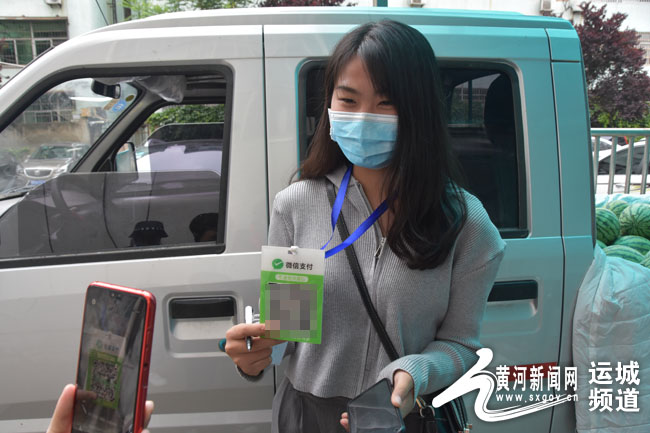 黄河新闻网运城讯(记者杨春)“姐,这是微信二维码,您扫这里就行,一共35元。”“叔,您预定了几个西瓜?都是刚摘的。”这边姚红存忙不迭,另一边前来品尝的人忍不住竖起大拇指:“西瓜又甜又脆,口感特别好。”