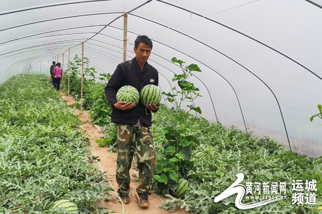 说干就干!种植场选址、搭建大棚、铺设管道……三十个西瓜大棚相继落成;育苗、掐尖、棚内湿度控制……有关西瓜种植各阶段的管理方法和用药技术指导,姚红存一家开始学习并应用于实践。不懂就学,不懂就问,现在的姚红存俨然成为一名小有经验的西瓜种植户。